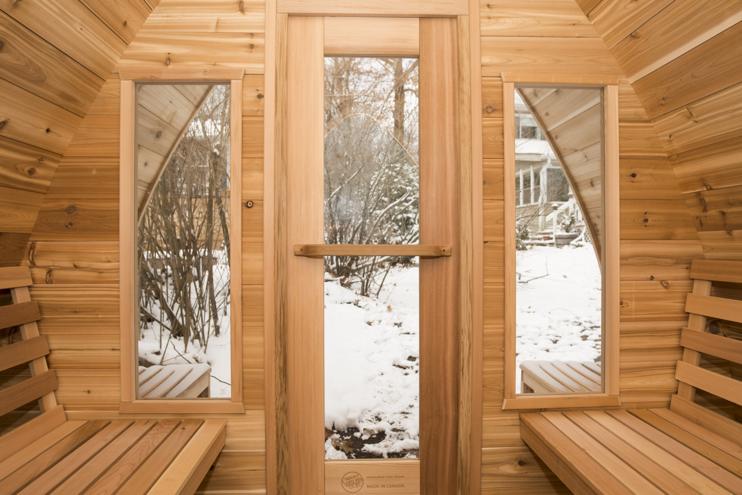 Design: Specifický tvar sauny připomínající igloo je praktickým řešením stavebnicového setu sauny spojující snadnou montáž, využití vnitřního prostoru s efektivní cirkulací vzduchu. Jde o styl hodící se zejména do prostředí horských chat a chalup, ale při vhodném umístění a stylizaci může být také zajímavým doplňkem zahrad i v městské zástavbě nebo na plochých střechách apod. Dokonalý prožitek relaxace a odpočinku pak umocňuje ryze originální a nenapodobitelná vůně a aroma dřeva západního červeného cedru.